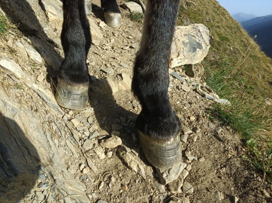 Les mules ont parfois la sole très compacte, qui ne s’exfolie pas, comme chez certains ânes. Si on n’utilise pas les bons repères lors du parage, on peut se laisser berner et obtenir des pieds trop longs. Il ne faut pas se laisser impressionner si on est amené à râper de la sole !