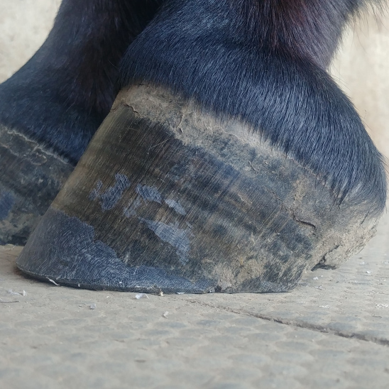 Les mules ont parfois la sole très compacte, qui ne s’exfolie pas, comme chez certains ânes. Si on n’utilise pas les bons repères lors du parage, on peut se laisser berner et obtenir des pieds trop longs. Il ne faut pas se laisser impressionner si on est amené à râper de la sole !